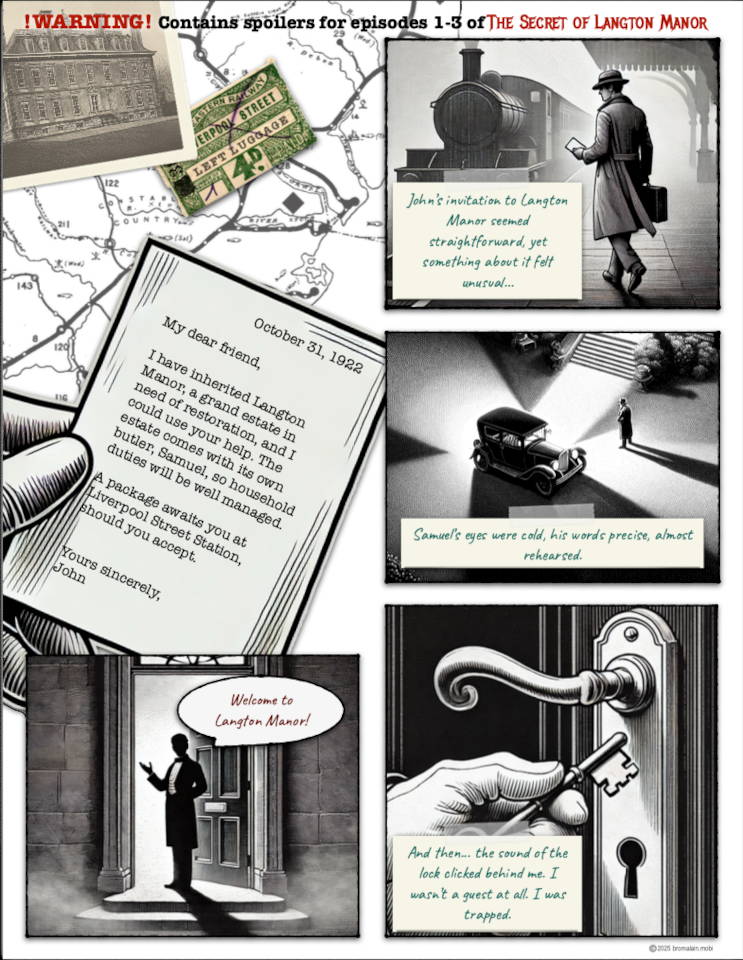 This edition of The Secret of Langton Manor uses a mix of public-domain imagery and AI-assisted illustrations.